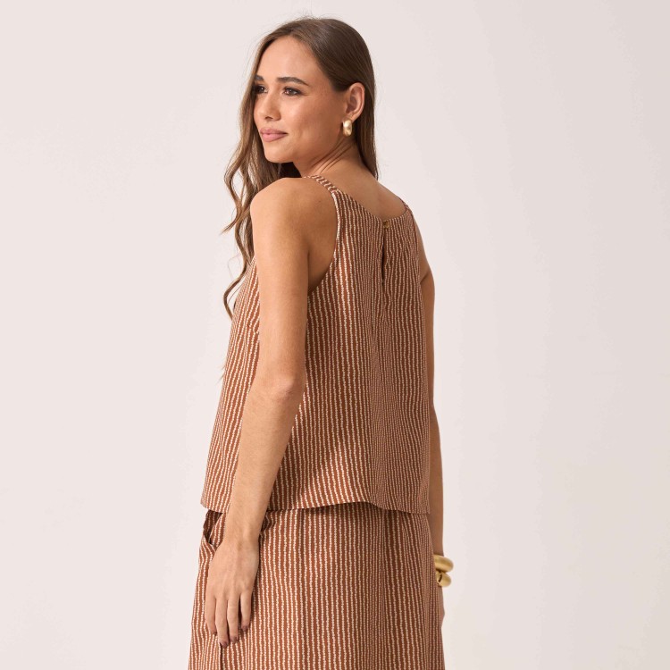 Blusa sem mangas confeccionada em tecido leve e de ótimo caimento, traz um visual moderno e elegante. Versátil e confortável, pode ser usada sozinha ou combinada com a saia do mesmo tecido para um conjunto harmonioso.